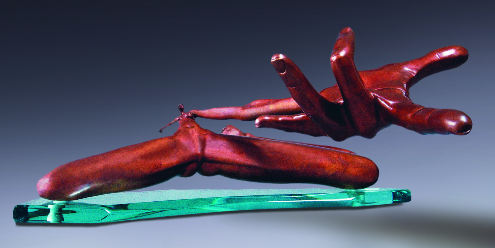 Bronze on mirrored glass, 24 x 19 x 18 inches